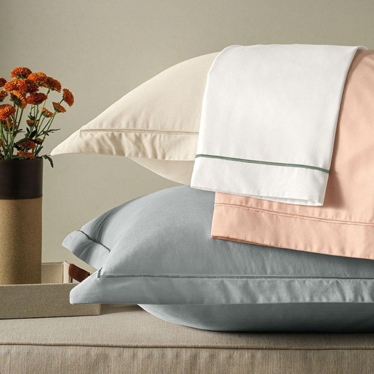 tecido 200 Fios • Jogo 3 peças (lençol com elástico + 2 fronhas) • Lençol com elástico tinto • Fronhas com 3 abas de 4cm com ponto royal nos 3 lados • 100% algodão